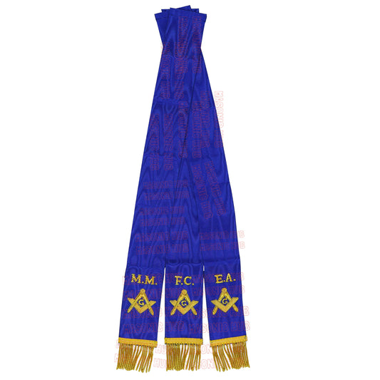 Masonic Bible Markers – Hand-Embroidered Royal Blue Ribbon with Gold Bullion Threads