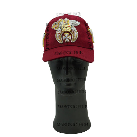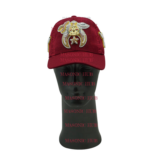 Masonic Shriner Maroon Cap – Handcrafted with Star Emblem, Rhinestones & Bullion