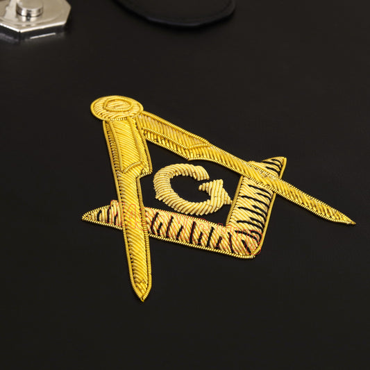Masonic Hand-Embroidered Square & Compass Apron Case – Black