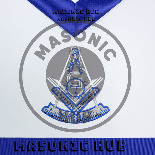 Masonic Past Master Apron – Freemason All White Regalia with Machine Embroidery