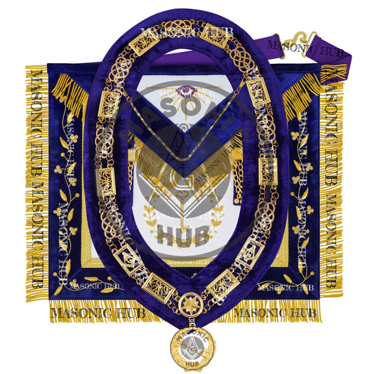 Masonic Grand Lodge Junior Warden Regalia Set – Hand Embroidered Lambskin Apron