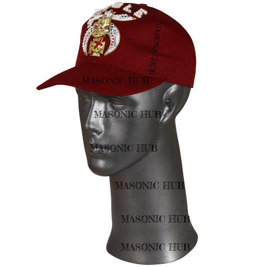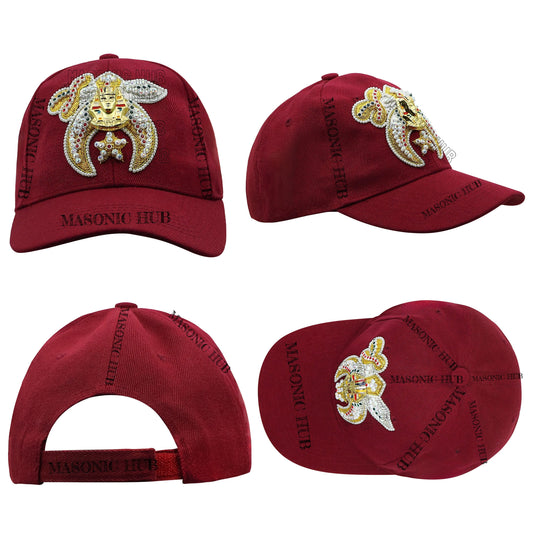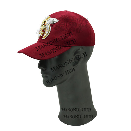 Shriner Noble Maroon Baseball Cap – Gold Tassel & Rhinestone Embellishments
