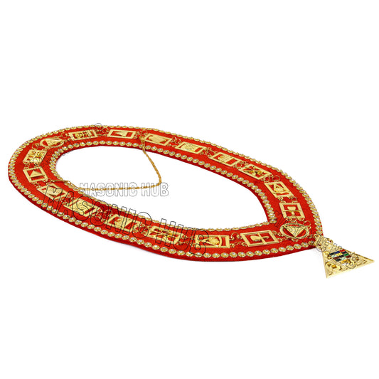 Masonic Royal Arch Past High Priest (PHP) Metal Chain Collar – Gold-Plated with Rhinestones & White Backing