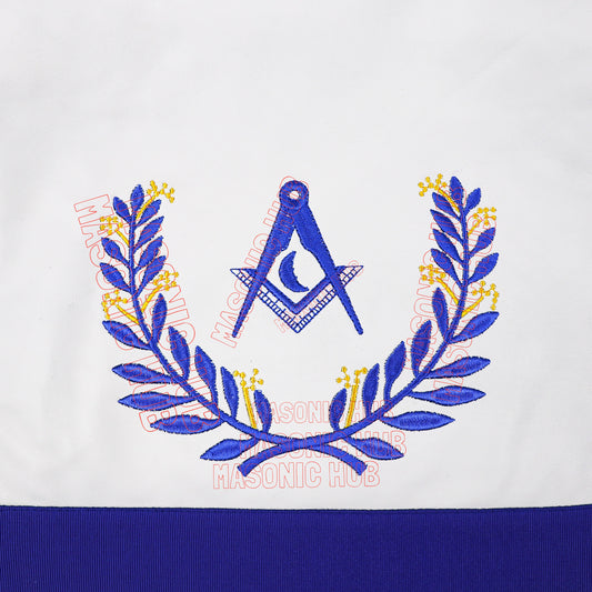 Masonic Regalia Jr. Deacon Cotton Apron - Blue Silk Trim, Machine Embroidery