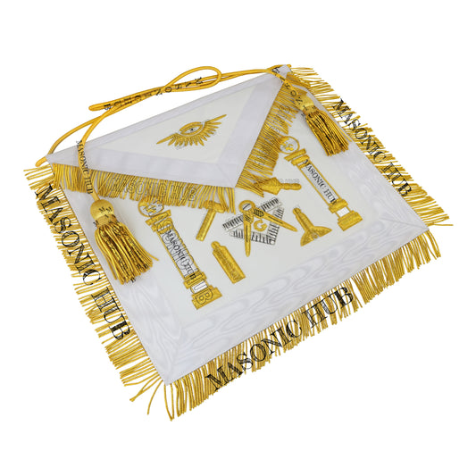 Masonic Master Mason Lambskin Apron with All-Seeing Eye Emblem Gold Mylar Fringe