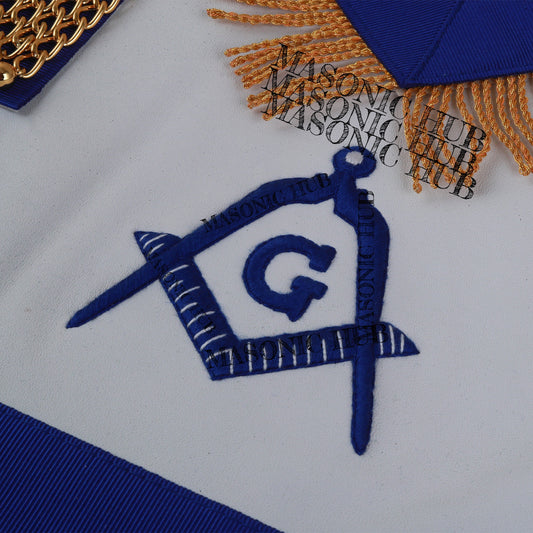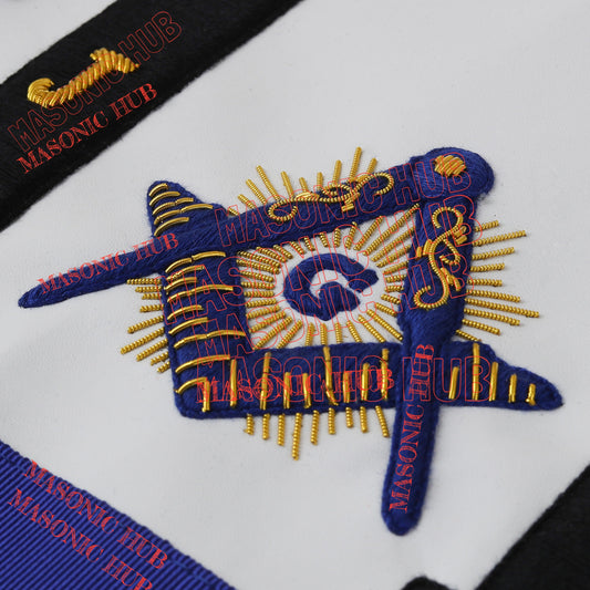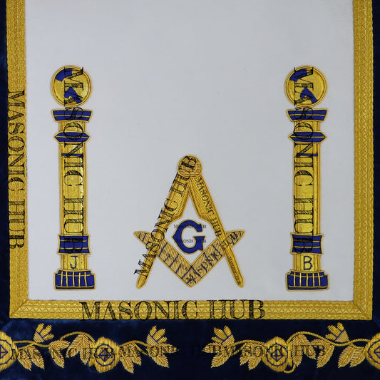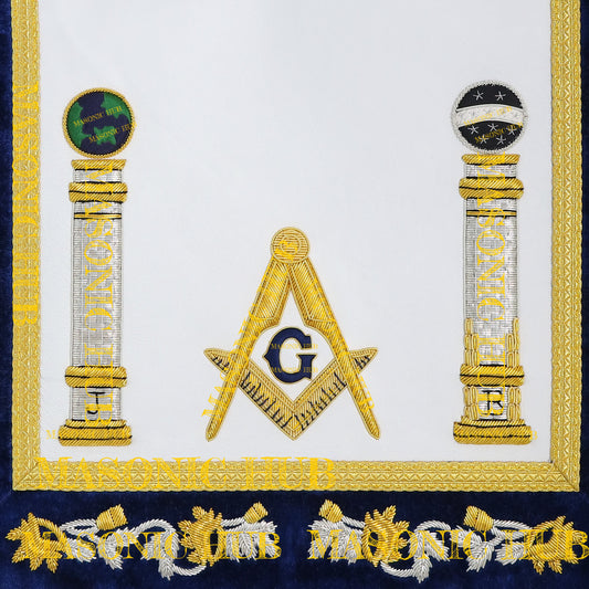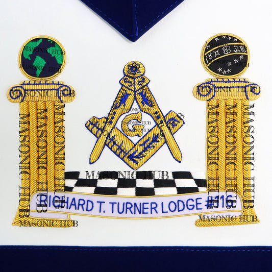 Hand-Embroidered Masonic Master Mason Apron Blue Velvet Trim, Custom Lodge Name