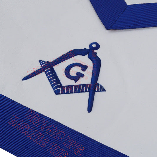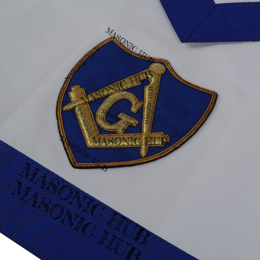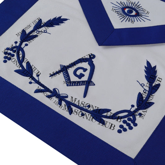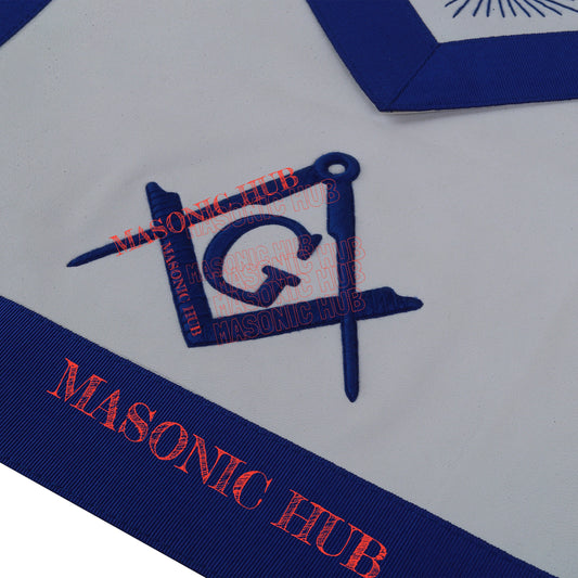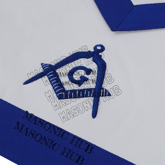 Master Mason Lambskin Apron with All-Seeing Eye Emblem – Blue & White Masonic