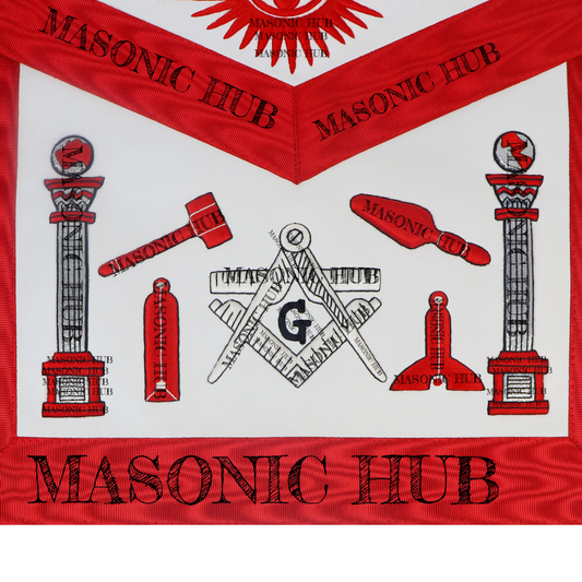 Master Mason Scottish Rite Apron – Red Velvet with Gold Bullion Embroidery, Gold Tassel with Red-White-Red Velvet Drops & Skull Lining | Masonic Hub