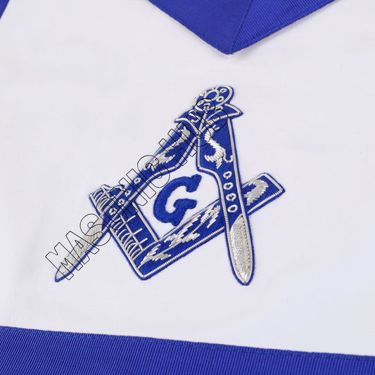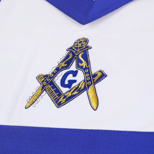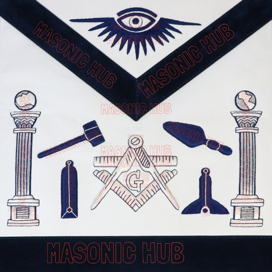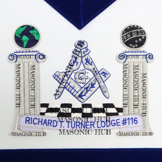 Hand-Embroidered Masonic Master Mason Apron Blue Velvet Trim, Custom Lodge Name