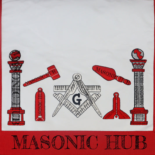 Masonic Past Master Tools Apron - Lambskin & Silk Threads - Hand Embroidered
