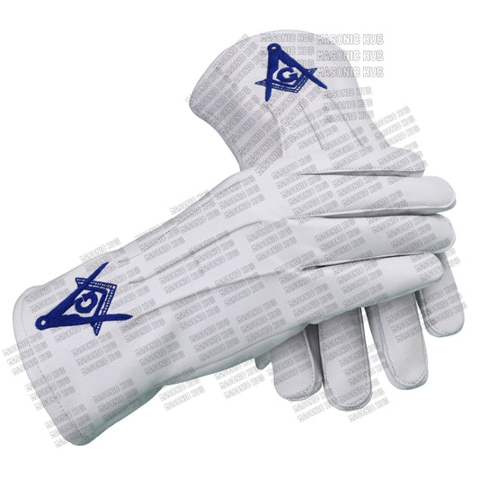 Master Mason White Leather Gloves – Square & Compass “G” Embroidered | Blue Lodge Masonic Regalia