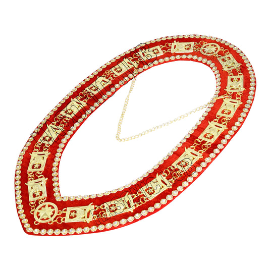 Masonic Shriner Chain Collar – Gold Plated with Red Velvet & Rhinestone Trim