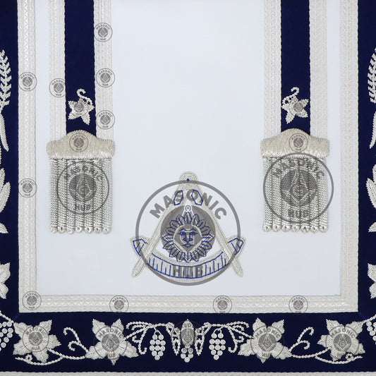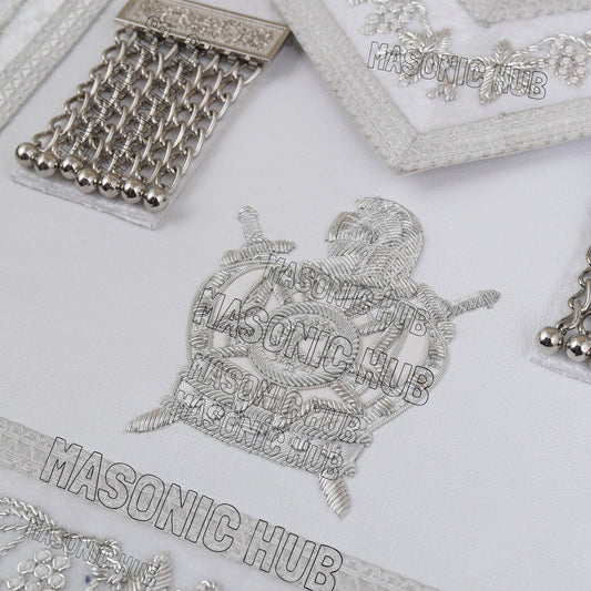 Masonic Past Master DeMolay Apron - White with Silver Bullion Embroidery & DeMolay Logo