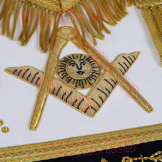 Masonic Past Master Apron – 100% Lambskin, Handcrafted with Gold & Silver Bullion Embroidery
