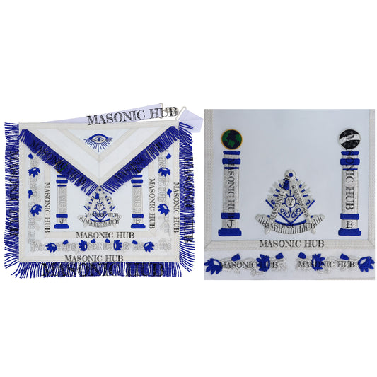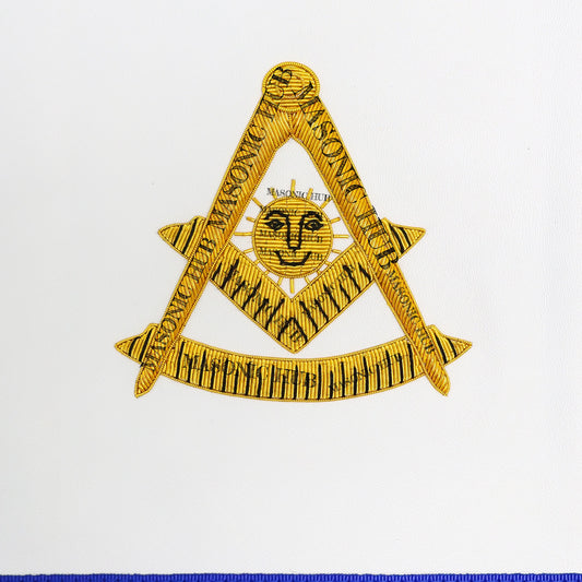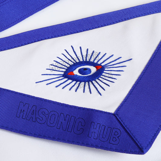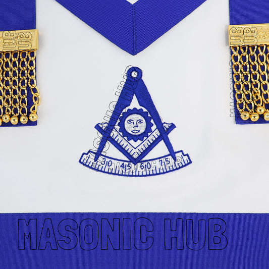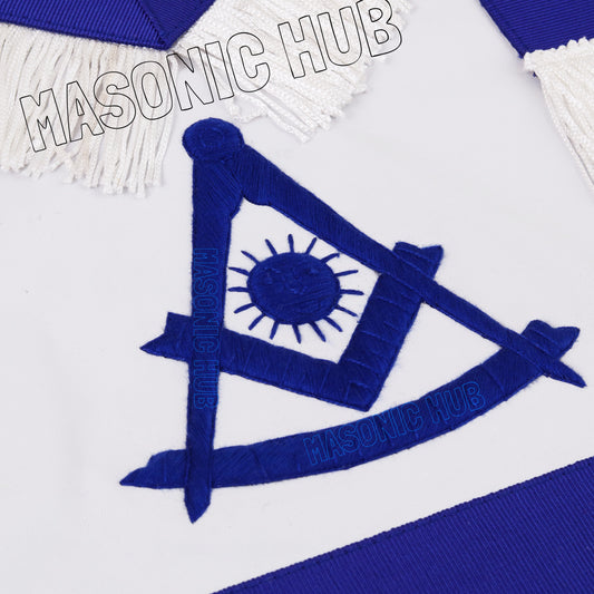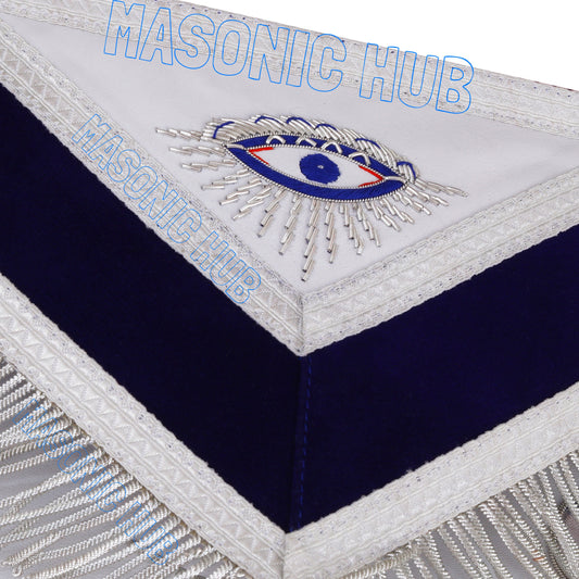 Masonic Past Master Apron – 100% Lambskin, Blue with White Fringe (Hand-Embroidered)