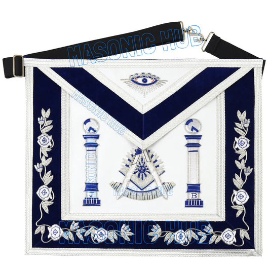 Masonic Past Master Mason Sheep Leather Apron – Handmade Bullion Embroidered | 100% Lambskin with Royal Blue Velvet