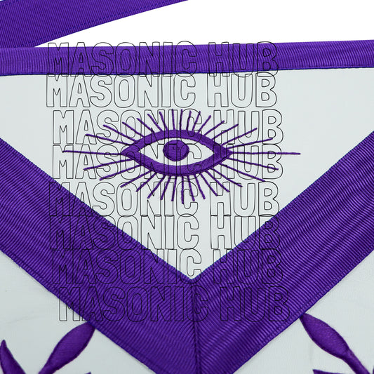 Regal Craftsmanship – Masonic Past Master Lambskin Apron with Elegant Purple Embroidery