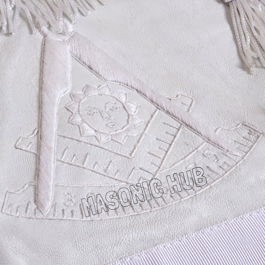 Masonic Past Master Apron – 100% Lambskin with Sun & White Fringe (Hand Embroidered)