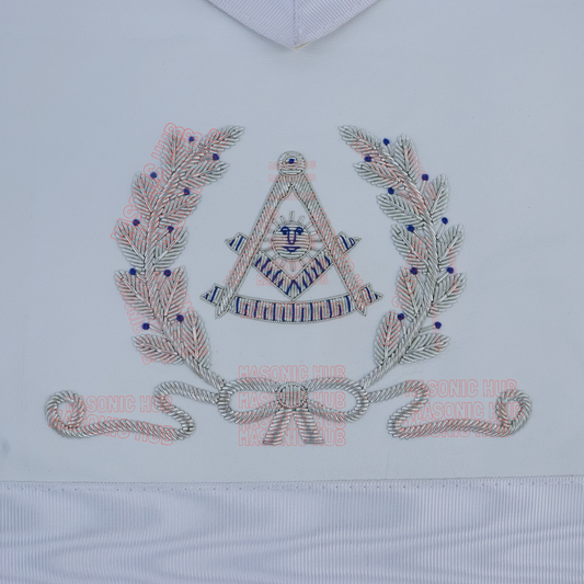 Masonic Past Master Lambskin Apron with Silver Bullion & Wreath Embroidery