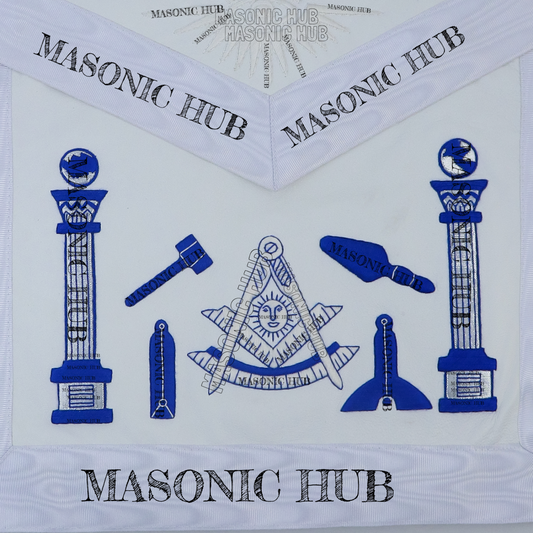 Masonic Past Master Lambskin Working Tools Apron - Hand-Embroidered Freemason