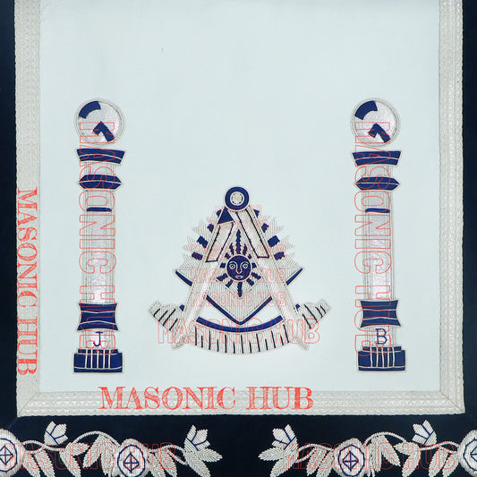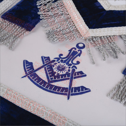 Masonic Past Master Lambskin Leather Apron - Hand Embroidered Freemason Regalia - Navy Blue Velvet