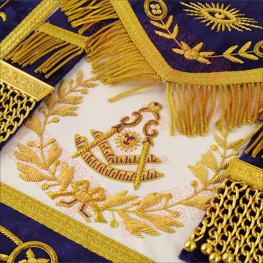 Gold Hand Bullion Past Master Embroidery 100% Lambskin Aprons Past Master- GOLD FRINGE