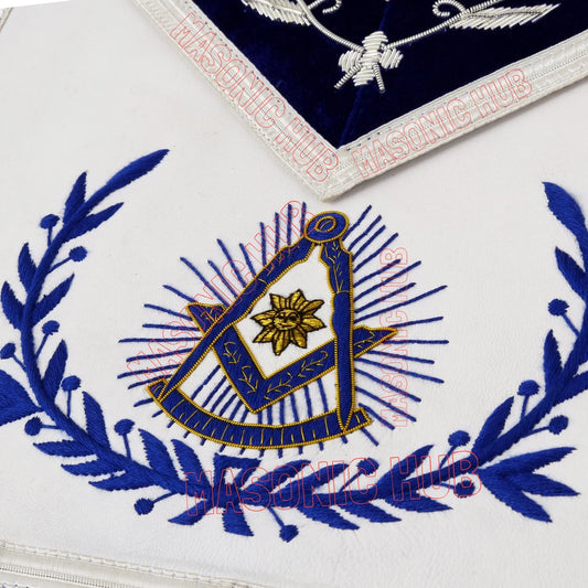 Past Master with Embroidered Border Masonic 100% Lambskin Apron -[Blue & White]