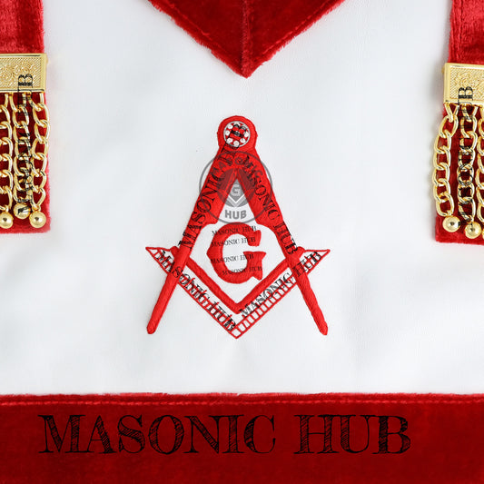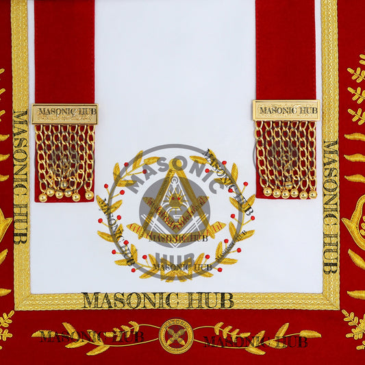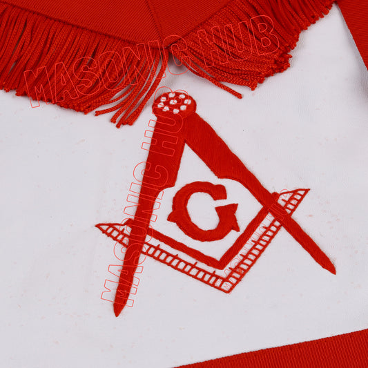 Masonic Master Mason Apron – Red Ribbon Dress Apron with Machine Embroidered