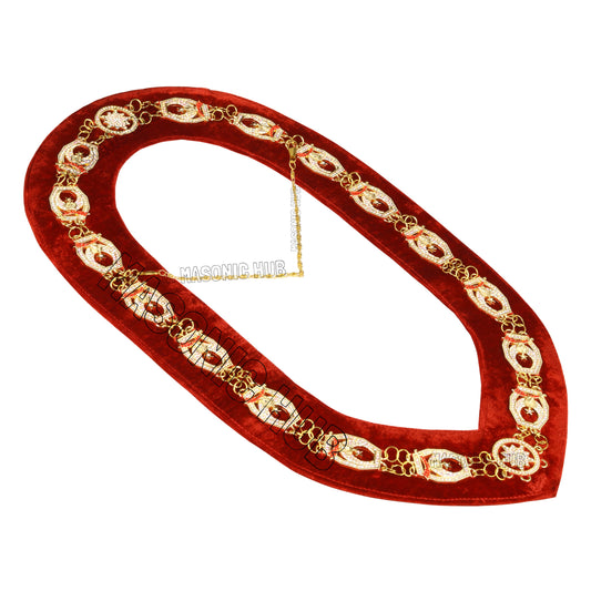 Masonic Shriner Chain Collar – Gold Plated with Red Velvet & Rhinestone Trim