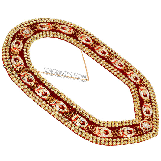 Masonic Regalia Rhinestones Jewels Shriner Chain Collar With Red Backing