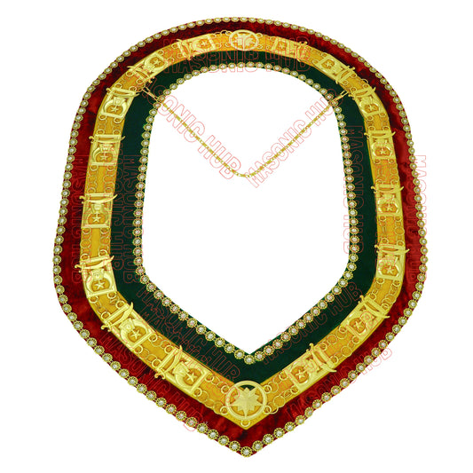 Regalia Masonic Shriner Tri-Color Deluxe Chain Collar in Red, Green, and Yellow