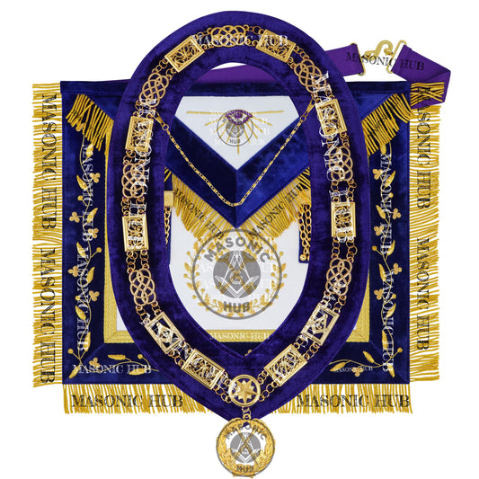 Masonic Regalia Blue Lodge Treasurer Apron & Chain Collar with Jewel