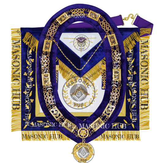 Masonic Blue Lodge Worshipful Master Apron Set with Chain Collar & Gloves – Officer Regalia