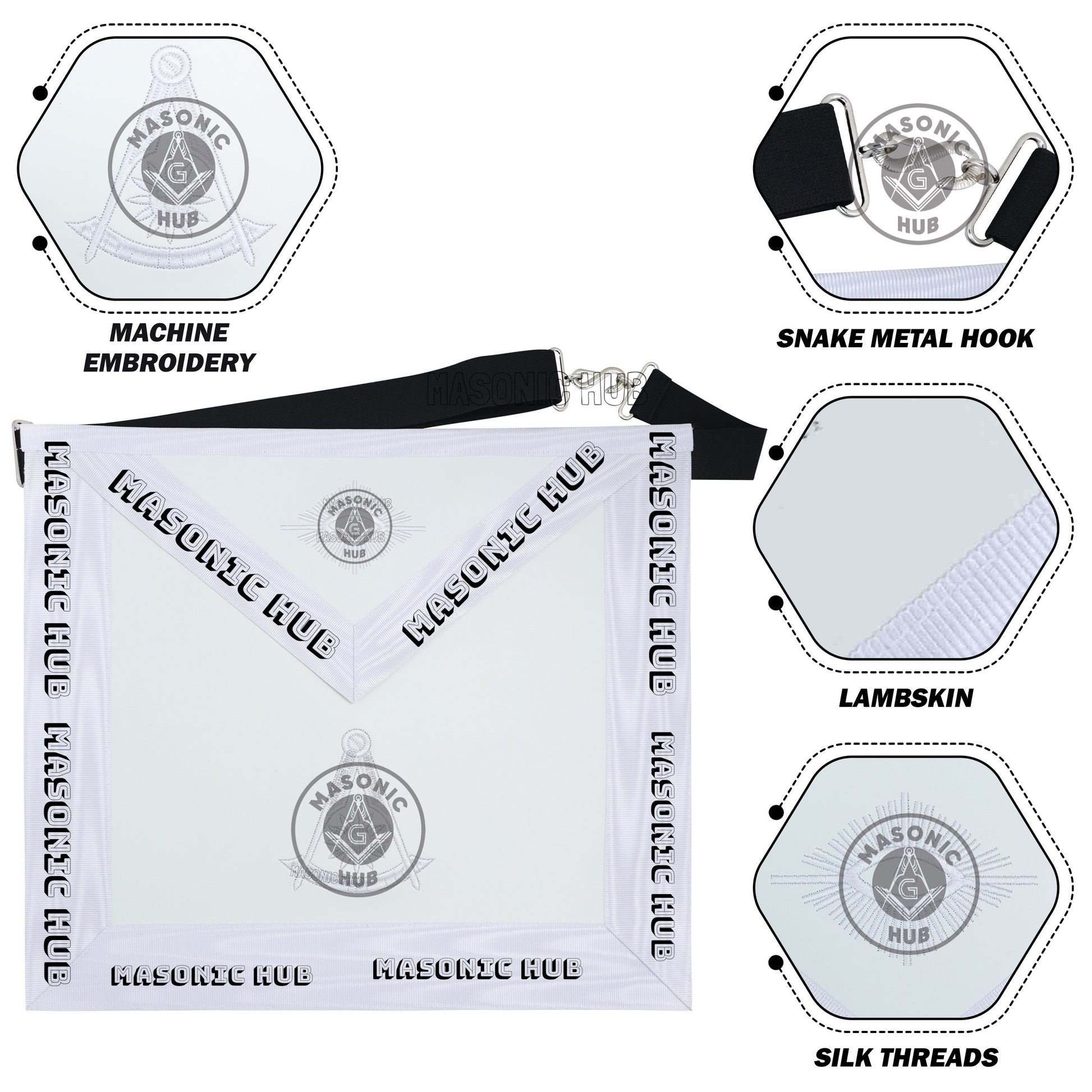 Past Master Masonic Apron Compass & Quadrant with Sun Emblem Machine Embroidery