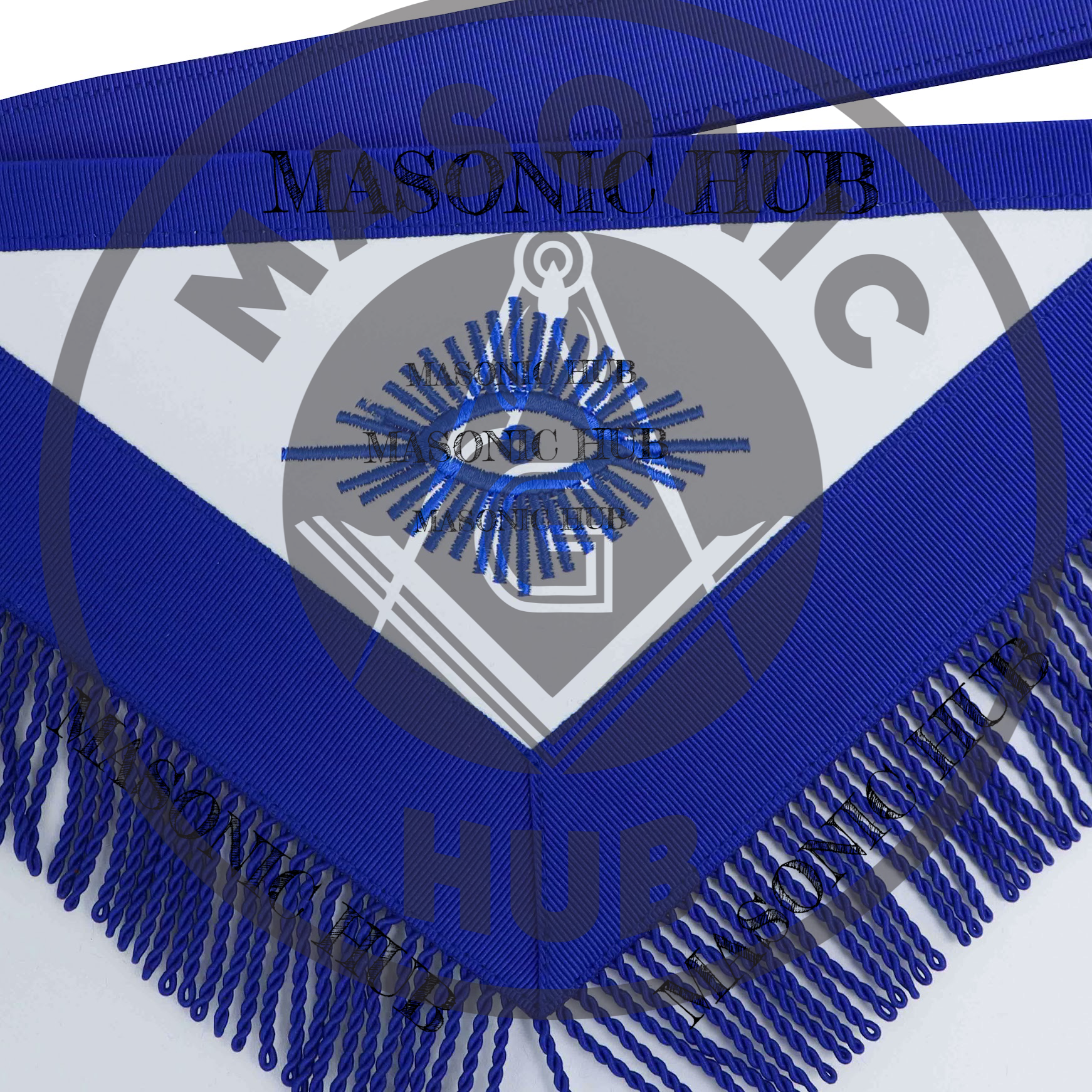Masonic Past Master Apron – Blue Ribbon, Embroidery & Fringe – Freemason Regalia for Lodge Officers