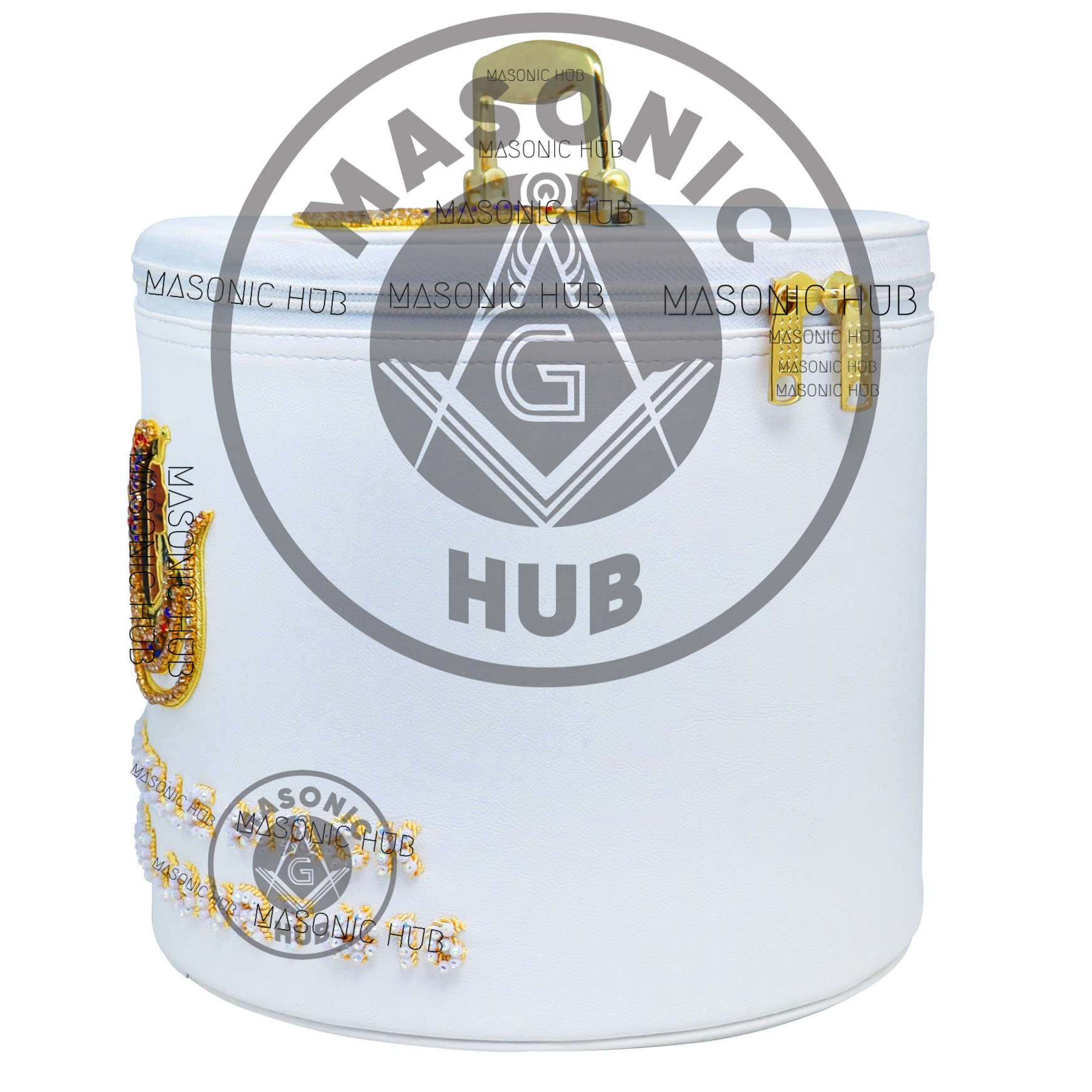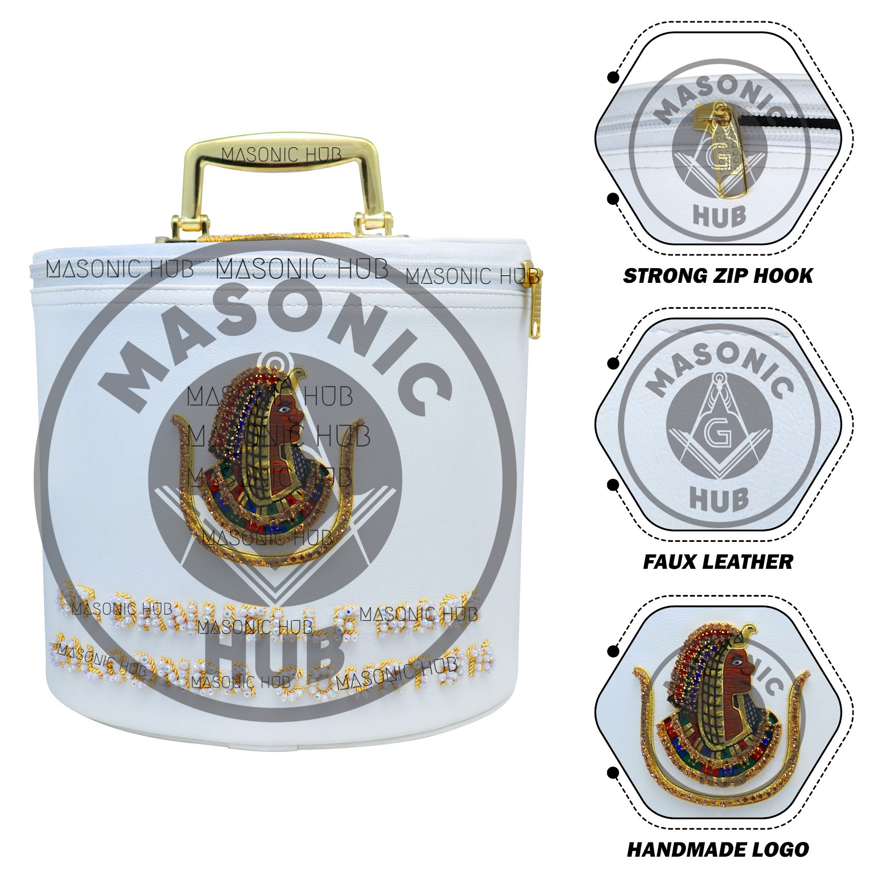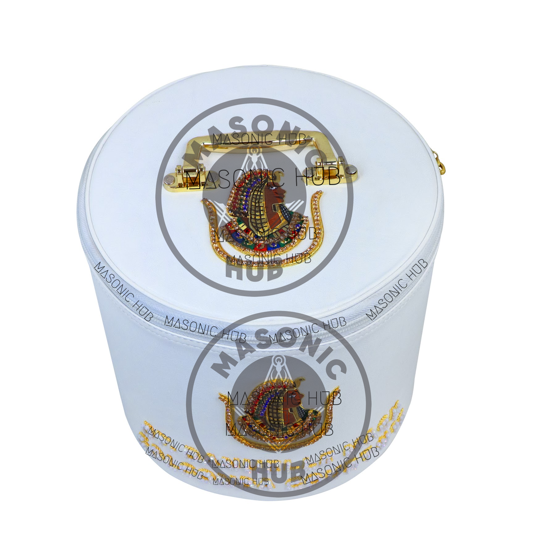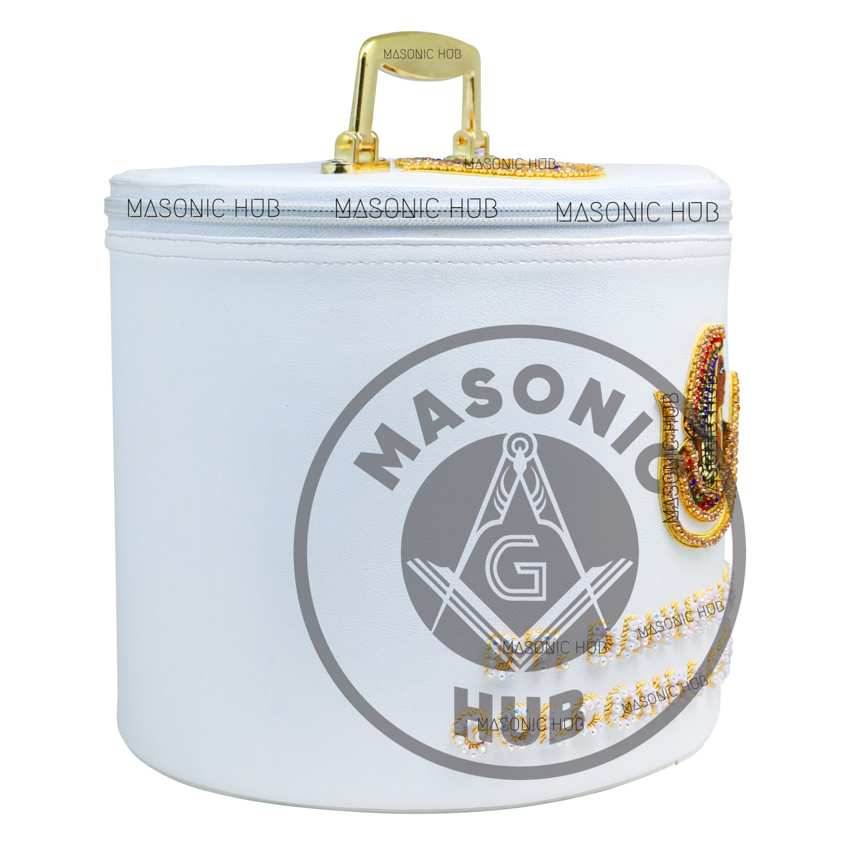 Elevate your Daughters of Isis Fez with this luxurious custom-designed fez case from Masonic Hub — where craftsmanship meets tradition. Expertly crafted from smooth white faux leather, this stunning case combines elegance, durability, and protection for your cherished fez.