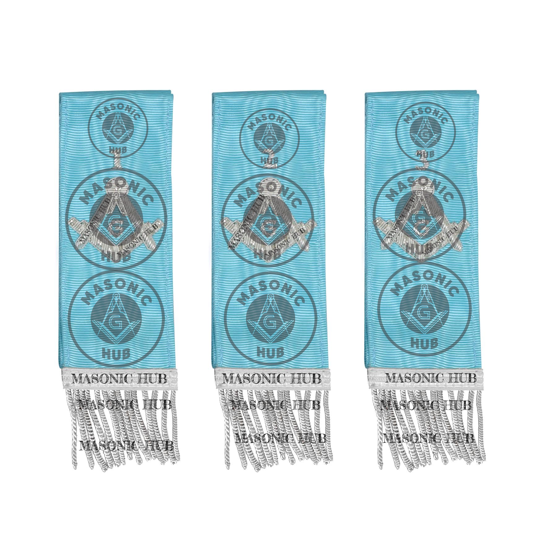 Masonic Bible Markers Set of 3 – Hand Embroidered Light Blue & Silver Craft Regalia | Ribbon with Silver Bullion Fringe by Masonic Hub