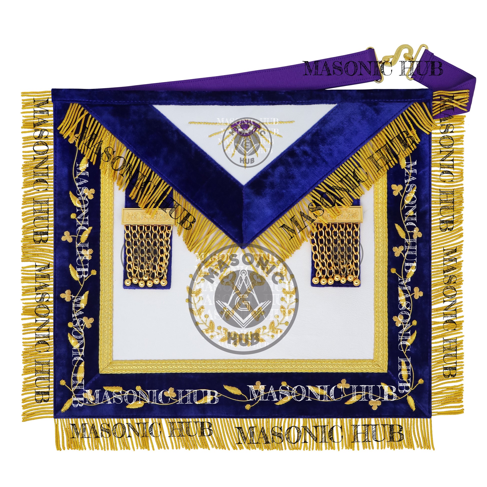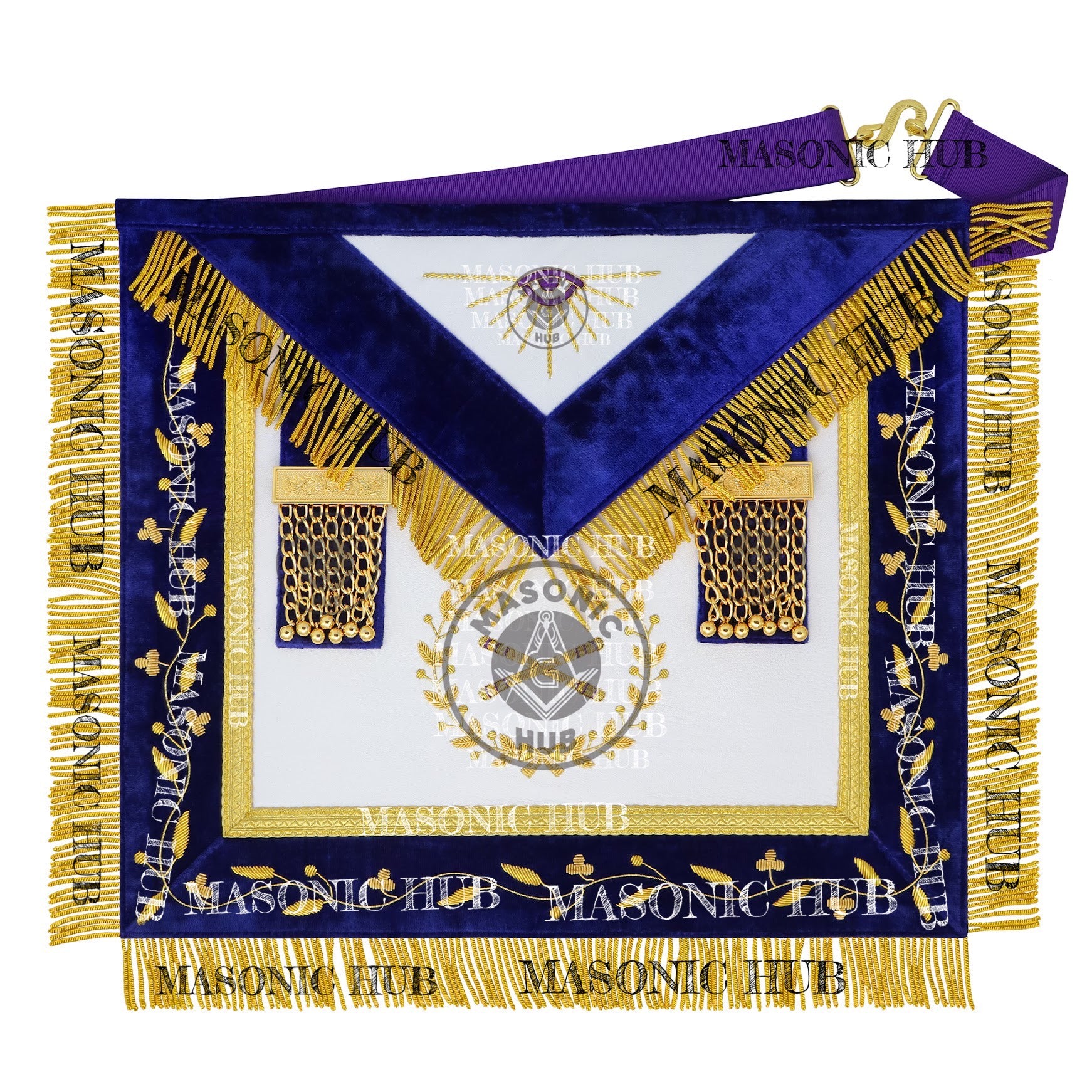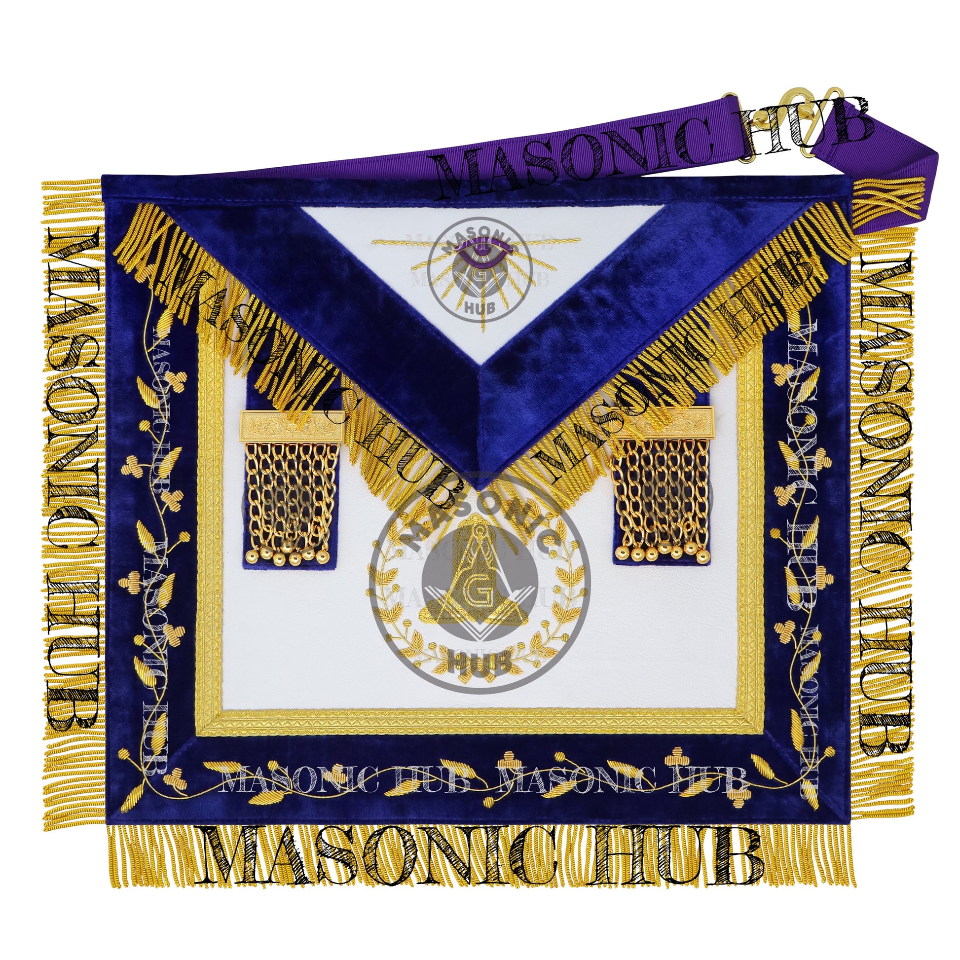Constructed from premium white lambskin, royal purple velvet, and gold bullion embroidery, this set radiates excellence, ceremonial prestige, and timeless elegance — a perfect representation of the values and honor of the Craft.