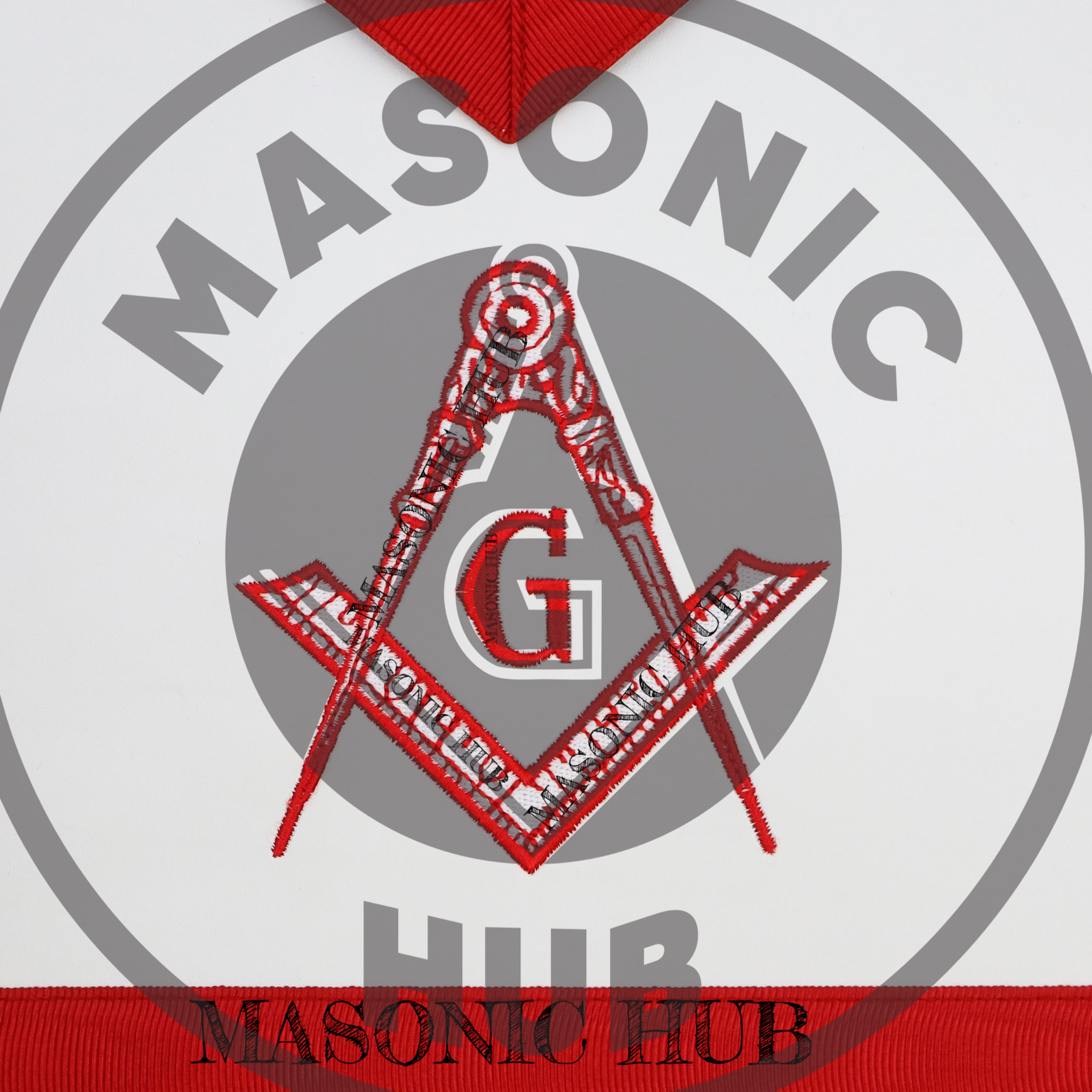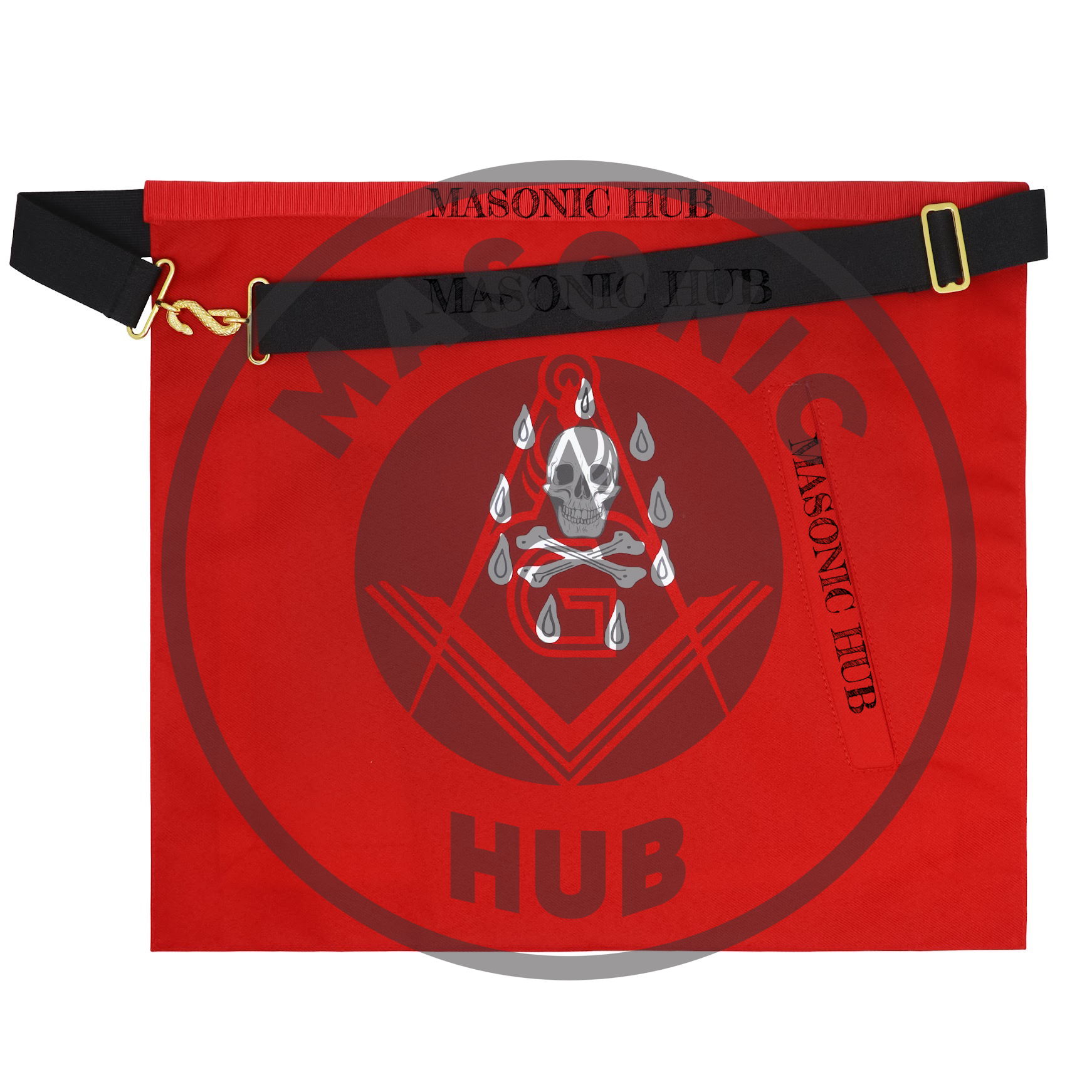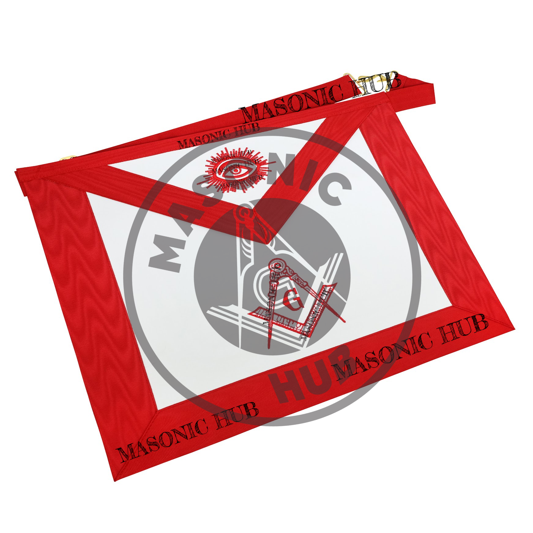 Masonic Master Mason Apron – Red Ribbon Dress Apron with Machine Embroidered