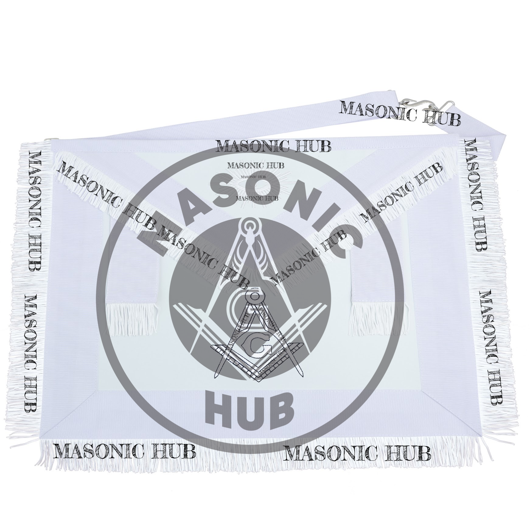 Master Mason Apron – White Ribbon with White Silk Fringe & Embroidery | By Masonic Hub