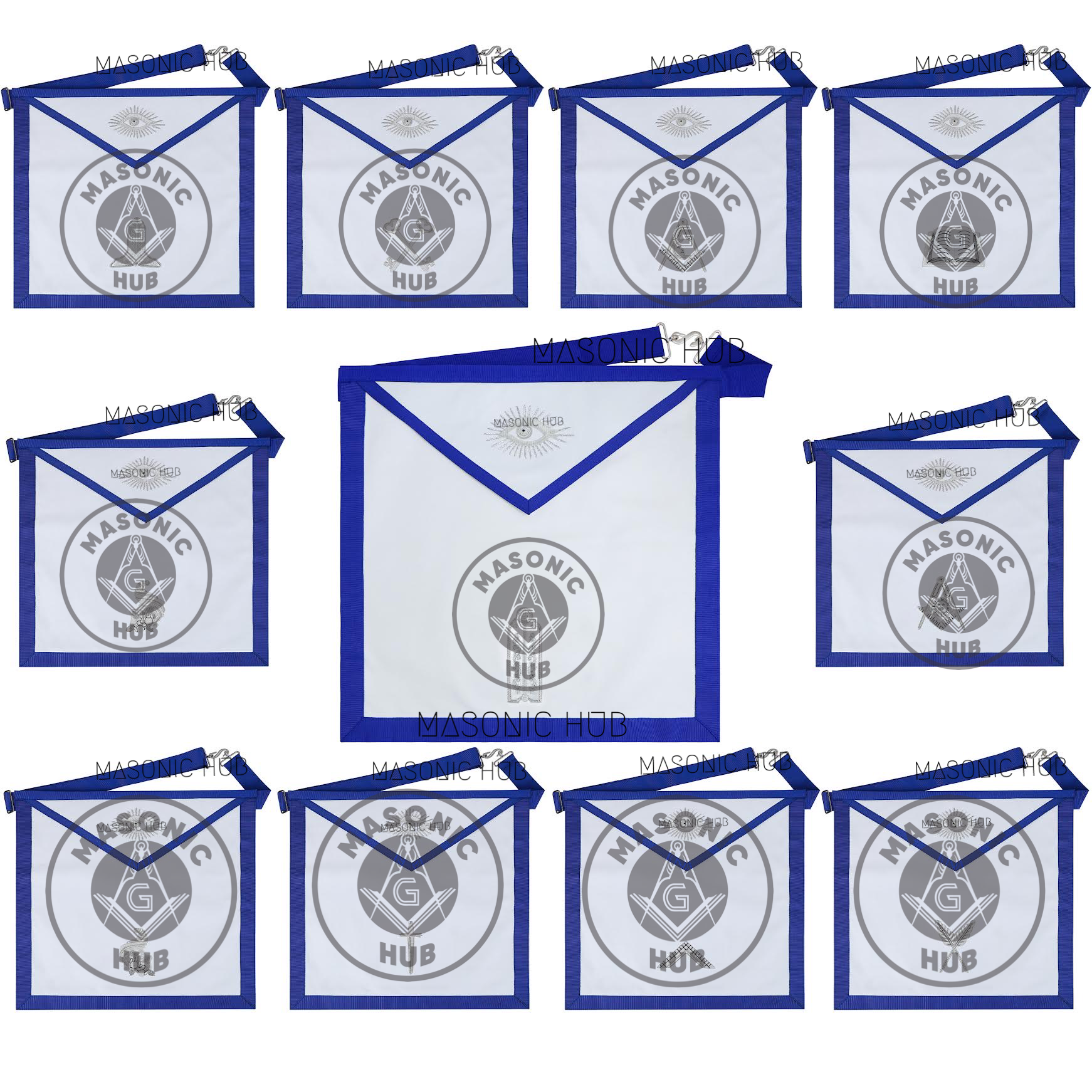 Texas Regulation Masonic Blue Lodge Officer Apron Set – 11-Piece Silver Embroidered Regalia with All-Seeing Eye
